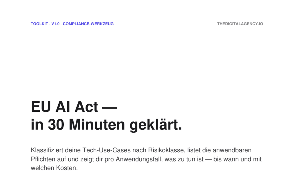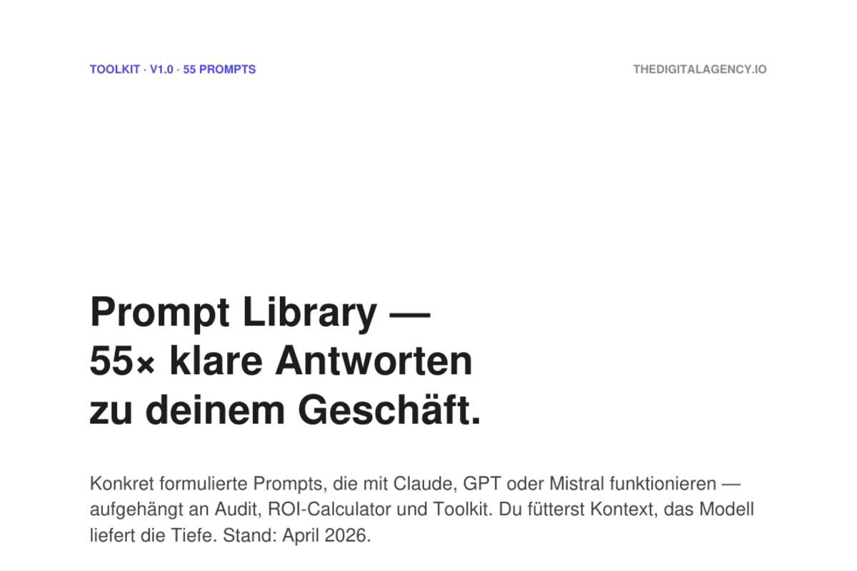 Maps your business model onto the nine fields most affected by AI, automation, blockchain, and robotics. With coach questions per block and a worked example (FräsTech GmbH, machinery).